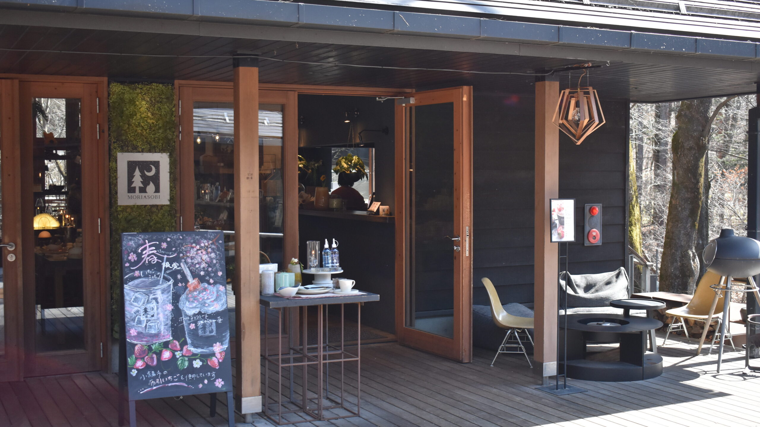 モリアソビ は、ハルニレテラス にあるアウトドアリビングをテーマにしたショップ兼ビストロで、屋外用家具や雑貨を扱うショップと、信州食材を使った料理を楽しめるカフェスペースが併設されています。店の奥には川のせせらぎが聞こえるテラス席があり、軽井沢の自然を感じながら食事ができる落ち着いた雰囲気が印象的でした。実際に人気のアサイーボウルを食べてみると、ひんやりとした滑らかな口当たりにベリーの爽やかな酸味と自然な甘さが広がり、フルーツやグラノーラの食感がアクセントになっていて散策途中の軽食としてちょうど良い満足感があります。季節限定のドリンクやフルーツフラッペなどもあり、暑い時期の休憩にもぴったりです。テラス席は開放感がありペット同伴も可能なので、愛犬と一緒に訪れたい人や自然の中でゆっくり過ごしたいカップルのデートにも向いていると感じましたが、軽食中心のメニューなので一人で気軽に立ち寄るカフェ利用にもおすすめです。