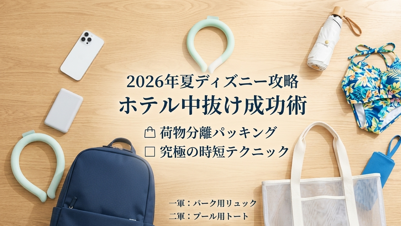 前回の記事では、パークを中抜けしてプールで涼む「賢い休み方」をご紹介しましたが、それを支える裏の主役は『パッキング術』です。