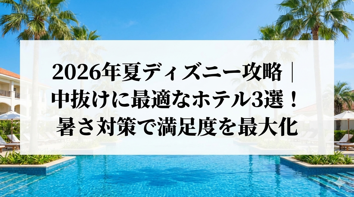 そこで重要になるのが、「移動の少なさ」と「プールの快適さ」を両立した拠点選びです。2025年の混雑状況や利用者のリアルな声をベースに、2026年夏の「中抜け」を120%成功させる厳選オフィシャルホテル3選を徹底解説します。