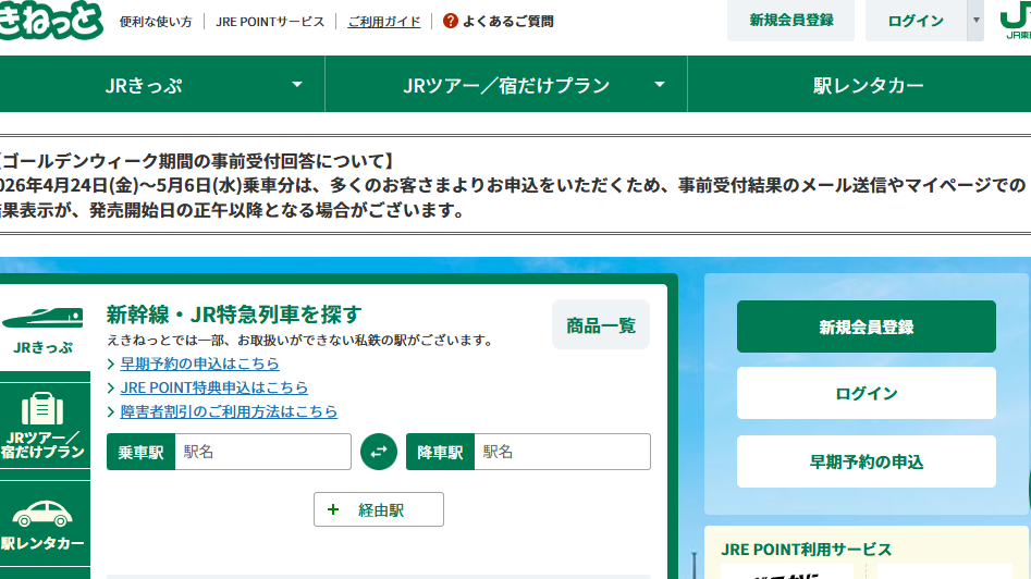 乗車日1ヶ月前のさらに1週間前から申し込める「事前受付」機能を使って、お目当ての「トクだ値」を予約しておきましょう。- 2026年の攻略術: 人気の「30%・50%OFF」は、発売開始(1ヶ月前の10時)と同時に一瞬で売り切れます。事前受付で第3希望までしっかり入力しておくことが、家族全員分の割引枠を確保する唯一の方法です。