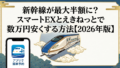 本記事では、東海道・山陽新幹線で使える「スマートEX(EX早特)」と、JR東日本エリアで活用できる「えきねっと(トクだ値)」を比較しながら、誰でも実践できる「最安で新幹線に乗る方法」を解説しました。